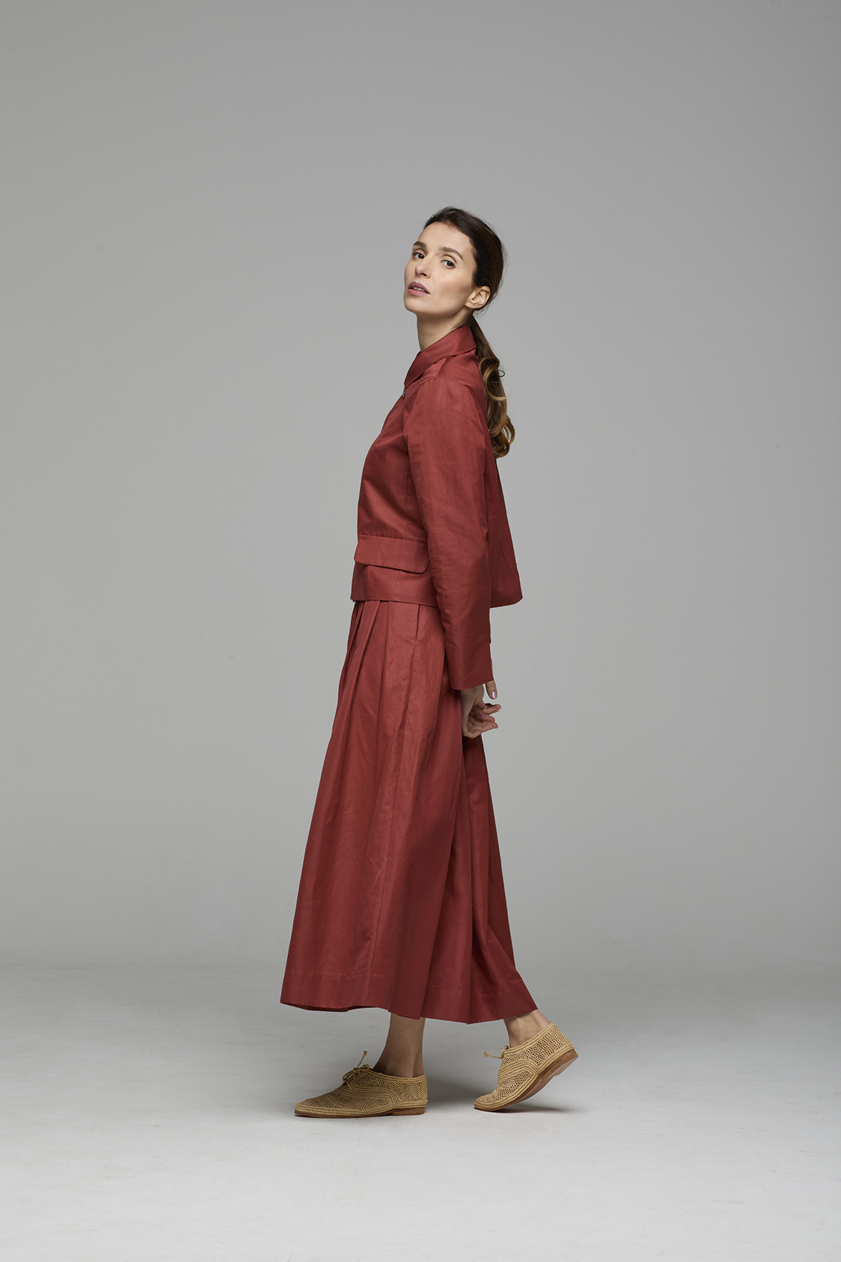 Lavorazioni artigianali donano profondità e carattere per una shiluette classica. in cotone strutturato , tradizionale e carattere