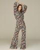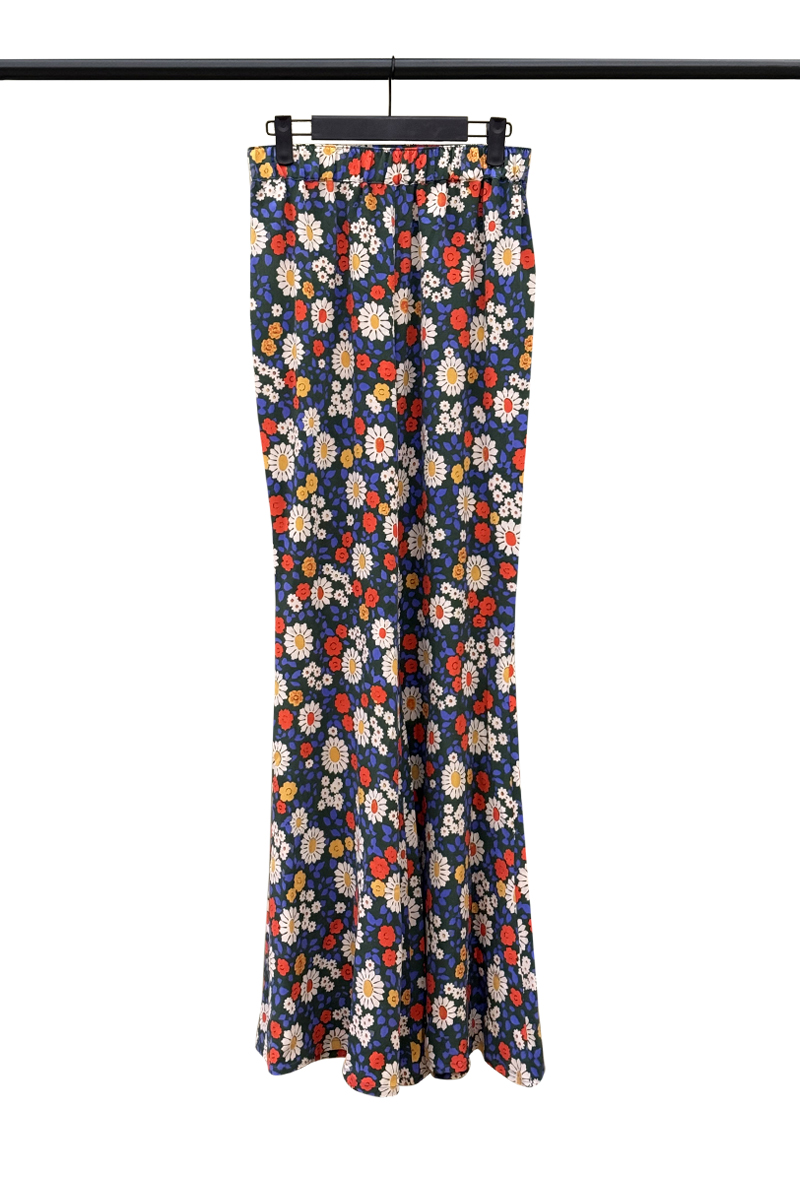 pantaloni in pura seta stampata, morbidi a taglia unica, lisci con elastico. gamba larga a campana